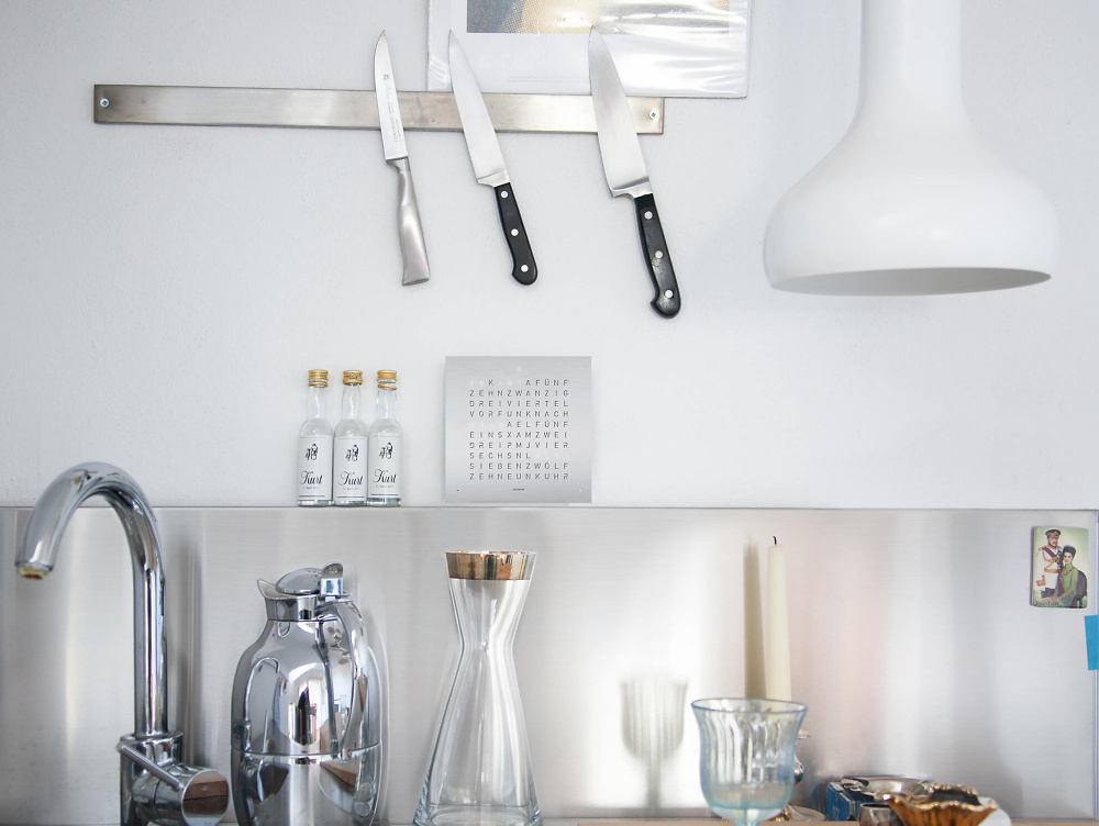 Dies erlaubt es Ihnen, der Uhr jederzeit ein neues Gesicht zu verpassen, da die Frontabdeckungen separat erworben werden können (einzige Ausnahme ist die Front in arabischer Sprache). Damit ist sichergestellt, dass die Uhr auch noch in 10 Jahren mit Ihrem Interieur harmoniert und letztlich wahrhaftig zeitlos wird. Mittlerweile ist die QLOCKTWO als Wanduhr in 23 Sprachen erhältlich. Besonders stolz sind wir natürlich auf die Variante in Schweizerdeutsch (Berndeutsch), die auf unser Hinwirken realisiert wurde.