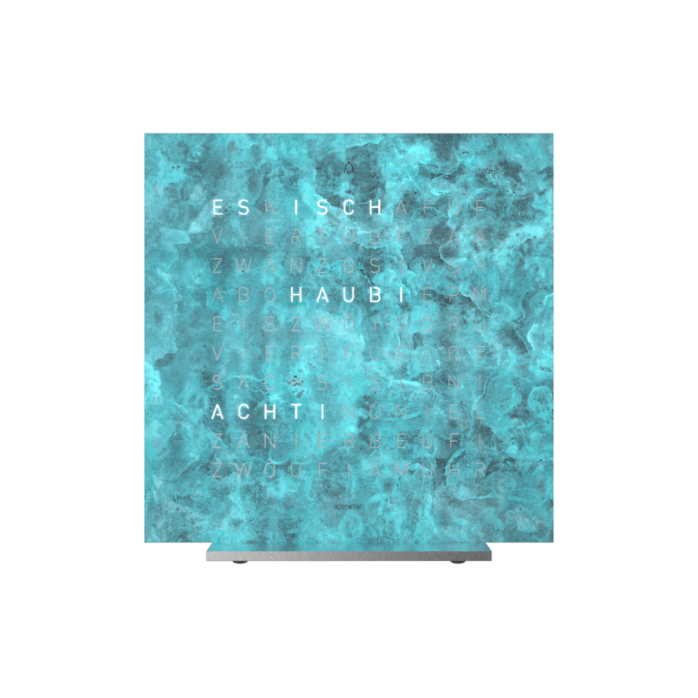 OHNE ZEIGER. OHNE ZIFFERN.Die QLOCKTWO EARTH ist eine Hommage an das einzigartige Kulturgut Zeit und unseren Planeten. Sie zeigt die 24 Stunden eines Tages auf einer Wortmatrix in den Sprachen unserer Welt an. Die Tischuhr EARTH 13.5
