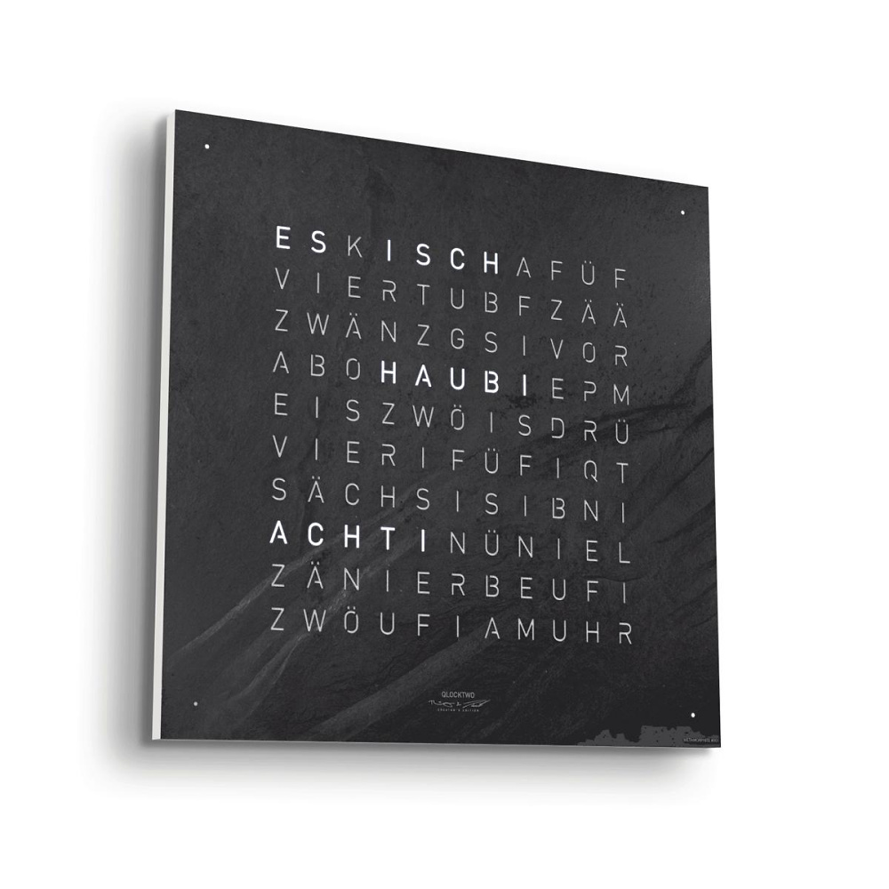 Mittlerweile ist die Qlocktwo als Wanduhr in 23 Sprachen erhältlich. Besonders stolz sind wir natürlich auf die Variante in Schweizerdeutsch (Berndeutsch), die auf unser Hinwirken realisiert wurde.