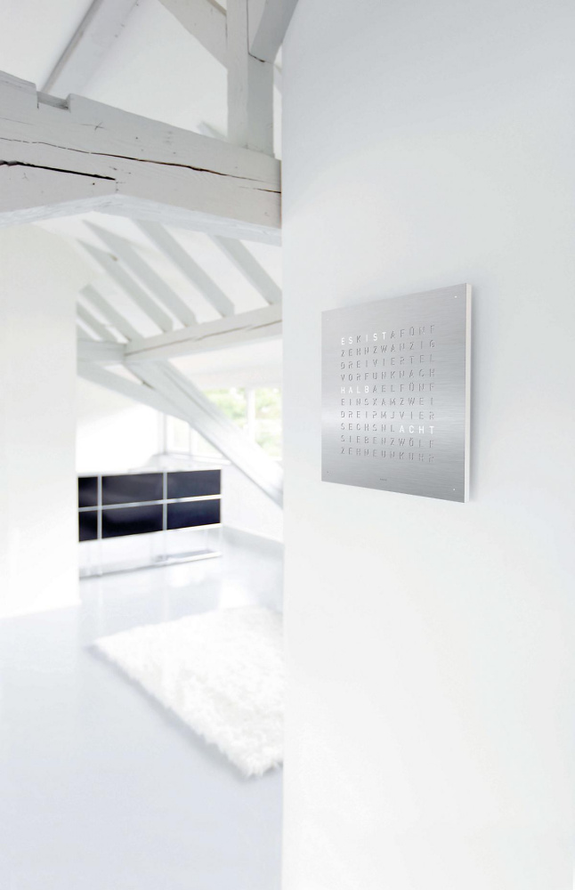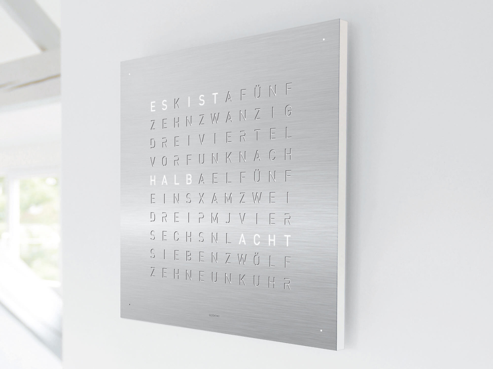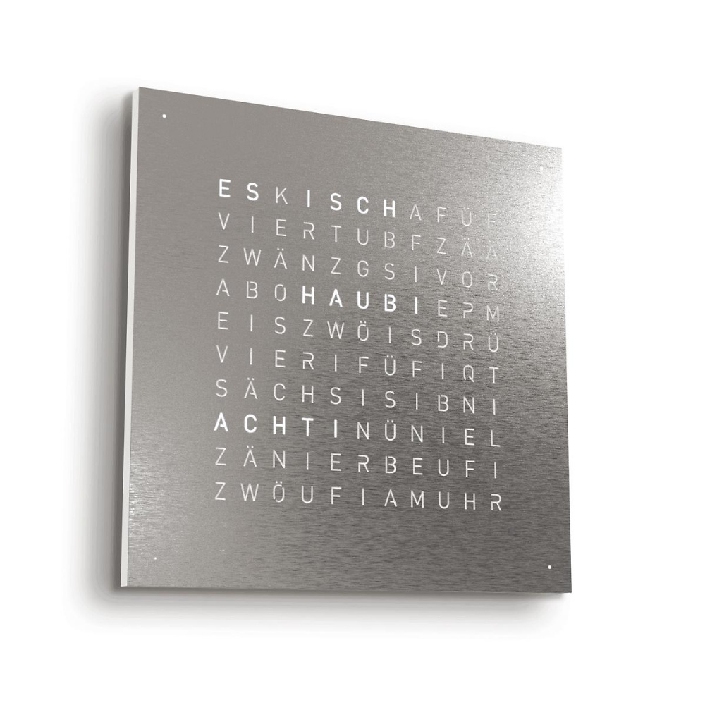 Mittlerweile ist die Qlocktwo als Wanduhr in 23 Sprachen erhältlich. Besonders stolz sind wir natürlich auf die Variante in Schweizerdeutsch (Berndeutsch), die auf unser Hinwirken realisiert wurde.