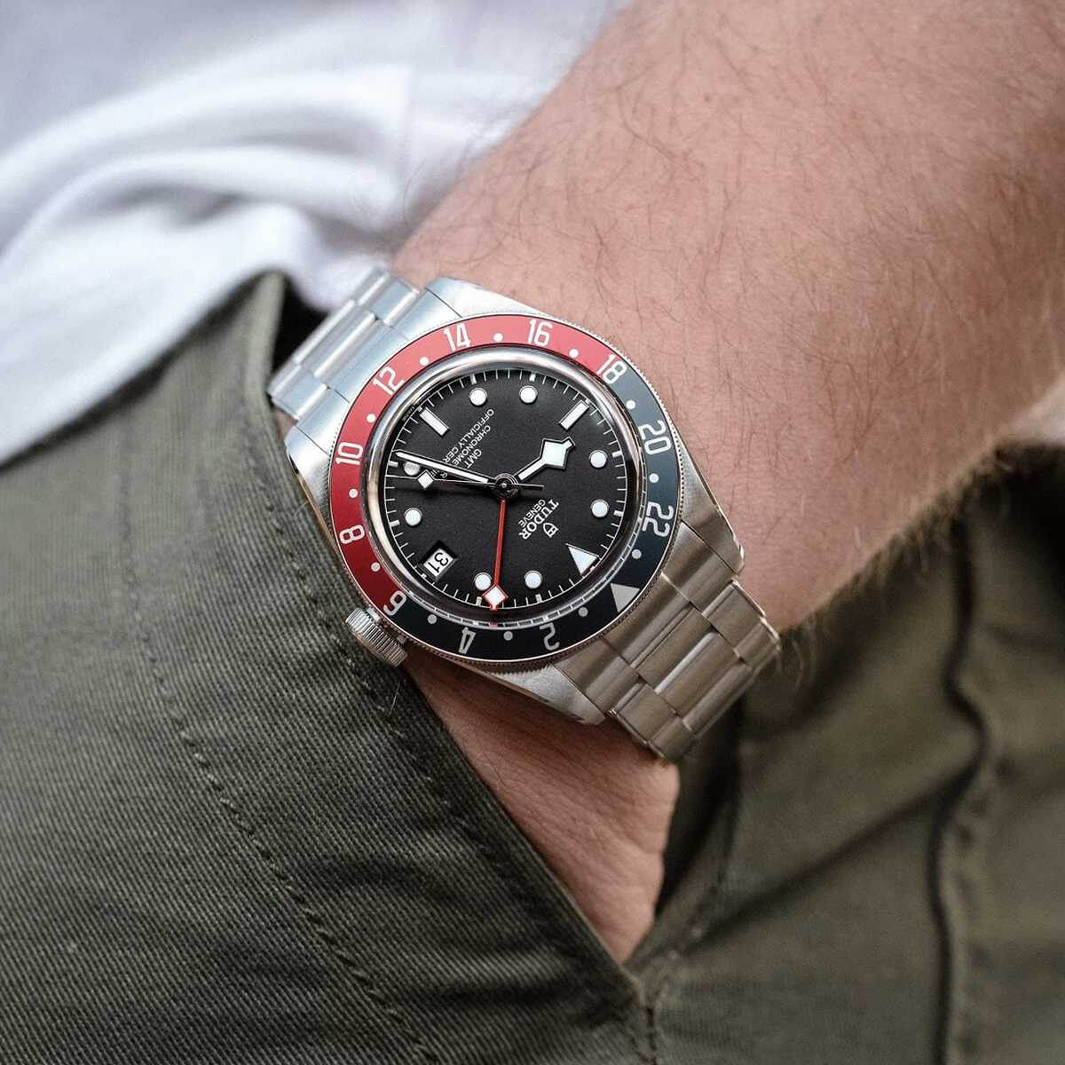 Die TUDOR Black Bay GMT vereint markantes Design mit hoher Funktionalität und richtet sich an alle, die Stil und Präzision auch auf Reisen schätzen. Angetrieben wird sie von einem COSC-zertifizierten Manufakturkaliber mit automatischem Aufzug, das neben der klassischen Zeitmessung eine GMT-Funktion zur Anzeige einer zweiten Zeitzone sowie ein Datumsfenster bietet. Damit ist sie die ideale Begleiterin für Vielreisende und den anspruchsvollen Alltag.