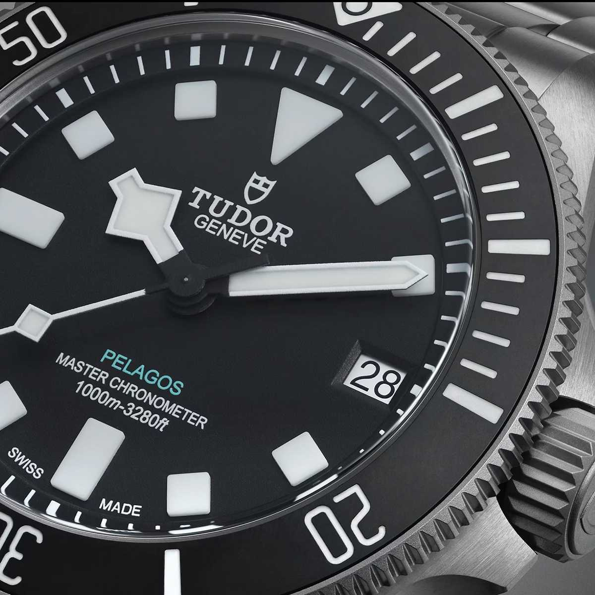 Die neue Pelagos Ultra wurde gezielt für extreme Tiefseeeinsätze konzipiert. Ihr 43-mm-Gehäuse aus Titan ist darauf ausgelegt, selbst einem Druck in Tiefen von bis zu 1.000 Metern standzuhalten. Zudem wurde die Leuchtbeschichtung überarbeitet, um die Ablesbarkeit deutlich zu verbessern: Sie verwendet nun zwei unterschiedliche Farben, Blau und Grün. Auch das Armband wurde speziell für den Einsatz beim professionellen Tauchen neu entwickelt. Das Gehäuse kombiniert Titan der Grade 2 und 5 und ist mit einem kompakten Heliumventil ausgestattet, das bei Sättigungstauchgängen ein sicheres Entweichen eingeschlossener Gase gewährleistet. Basierend auf dem ursprünglichen Pelagos-Modell wurde auch das Zifferblatt optimiert, um die Lesbarkeit zu erhöhen. Die Zeiger sind kräftiger gestaltet, die Stundenmarkierungen vergrößert, und der Minutenzeiger hebt sich durch grüne Leuchtmasse sowie eine hervorgehobene Markierung (PIP – Primary Indicator Position) ab, damit die verstrichene Zeit leichter erfasst werden kann.
