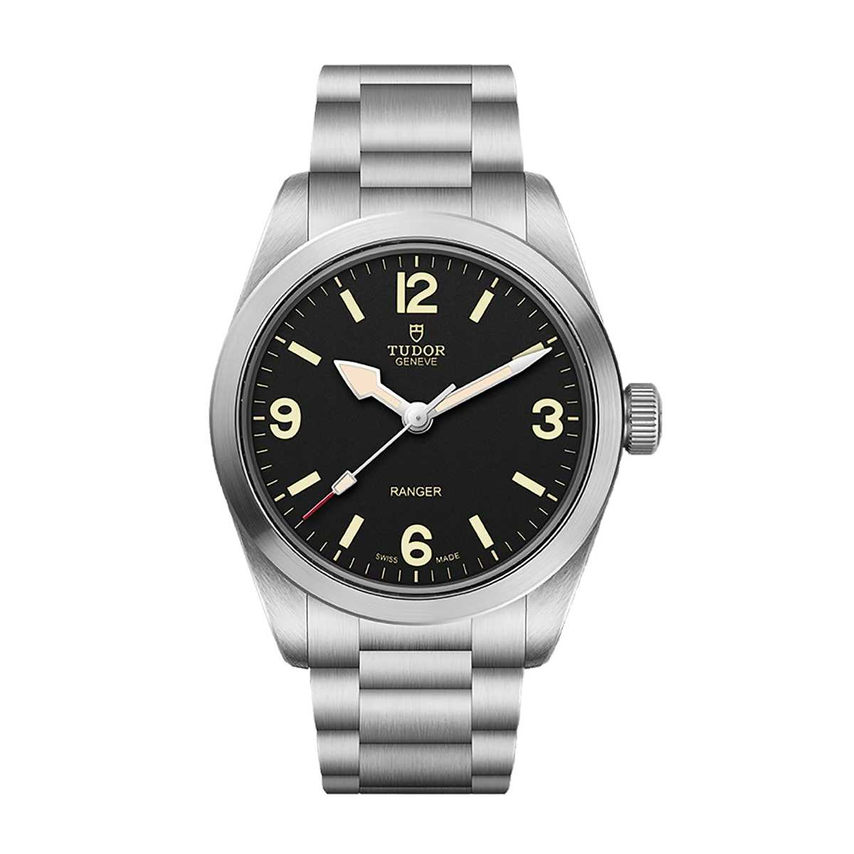 Marke TUDOR Modell Ranger Referenz M79930-0001 Dimensionen 39mm Materialien Gehäuse aus Edelstahl mit matt-schwarzem, gewölbten Zifferblatt, geschützt durch ein Saphirglas, begleitet von einem Uhrband aus Edelstahl mit TUDOR „T‑fit“-Sicherheits-Faltschliesse Kaliber Mechanisches Manufakturwerk mit COSC- zertifiziertem Manufakturkaliber MT5400 mit automatischem Aufzug Funktionen Anzeige der Stunden, Minuten und Sekunden