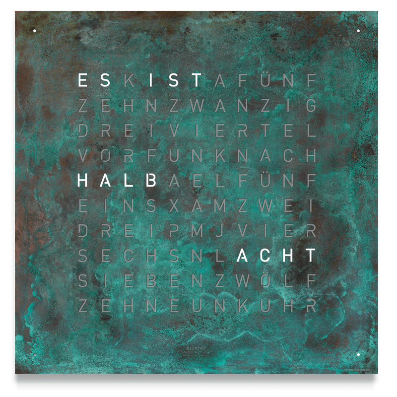 Die QLOCKTWO EARTH 45 wurde 2009 erstmals der Weltöffentlichkeit vorgestellt und bleibt bis heute das meistverkaufte Modell. Mit ihren Dimension wirkt sie an die Wand gehängt wie ein Bild, kann aber auch mittels des mitgelieferten Standfusses aufgestellt werden. Das austauschbare Frontcover der EARTH wird mittels Magneten auf der Grunduhr aus weiss lackiertem MDF gehalten. Diese modulare Bauweise sorgt dafür, dass sie sich beliebig an Ihren Einrichtsungsstil oder Ihre Lust und Laune anpassen lässt, da die Frontcover separat als Zubehör erwerblich sind.