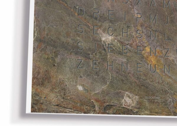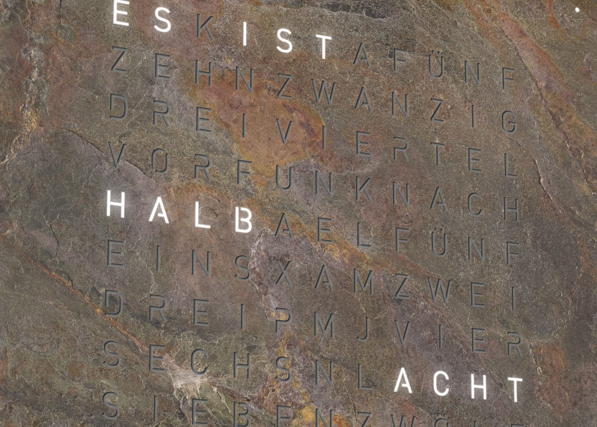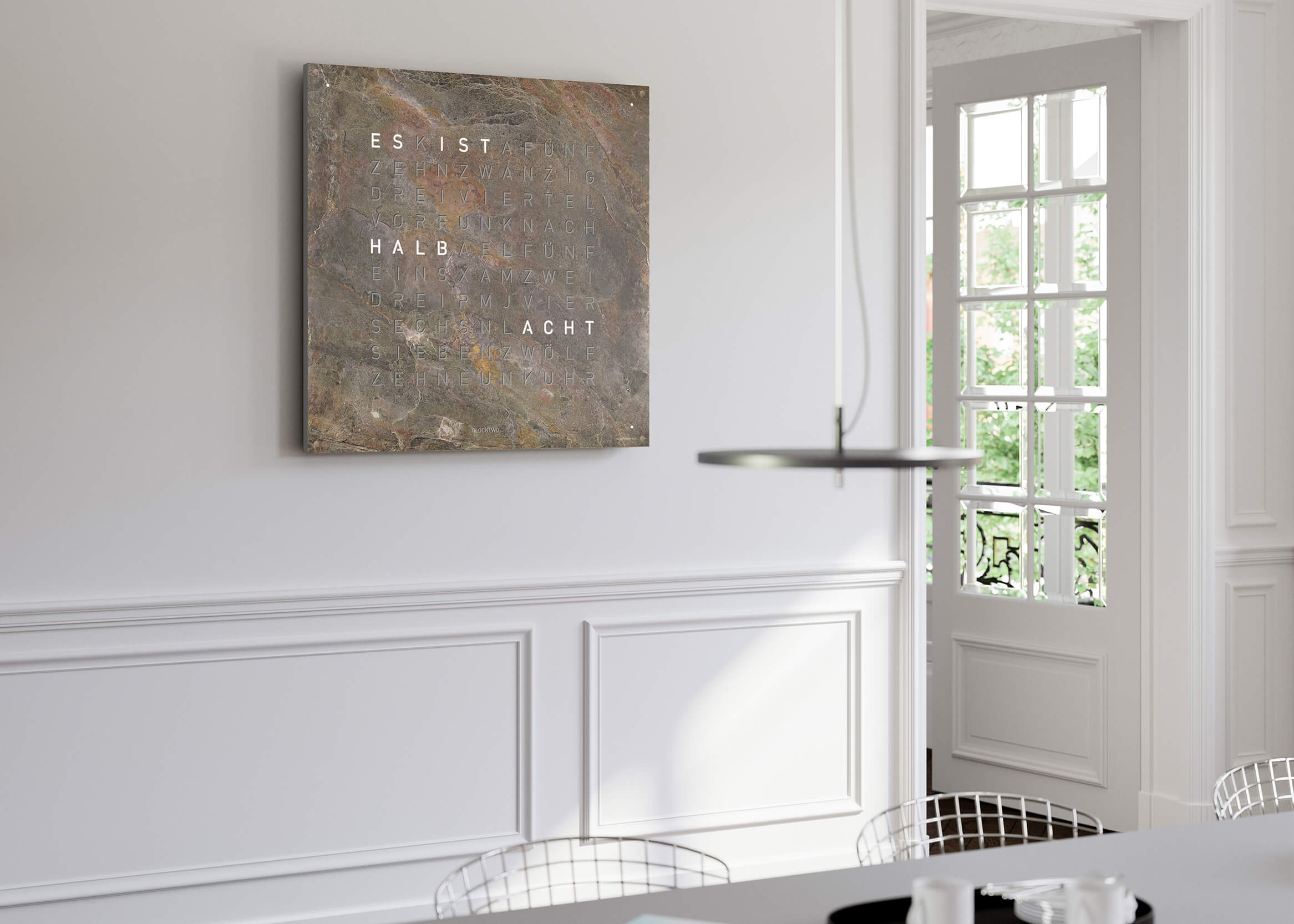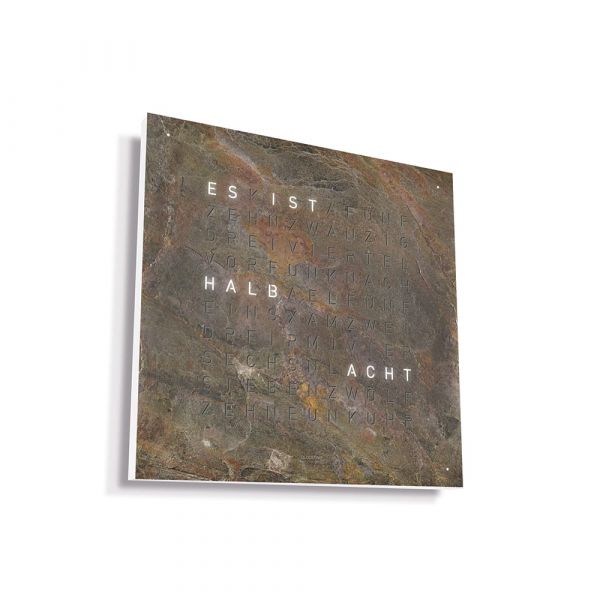 Der edle Naturstein geht mit der poetischen Zeitanzeige der QLOCKTWO eine außergewöhnliche Verbindung ein und schafft so ein einzigartiges Kunst- und Kultobjekt.