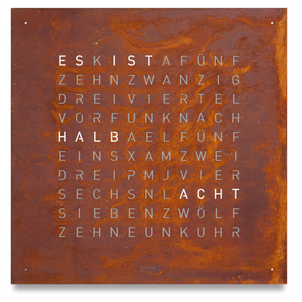 – QLOCKTWO EARTH 45 mit gerostetem, auswechselbarem Frontcover aus Edelstahl