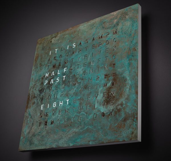 – QLOCKTWO EARTH 45 mit auswechselbarem Frontcover aus patiniertem Kupfer