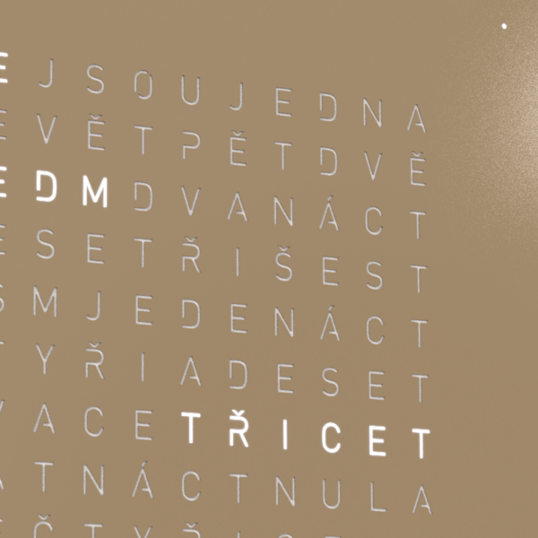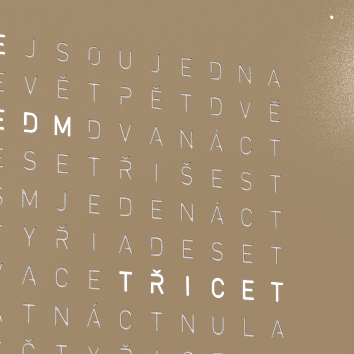 – Typografische Zeitanzeige in 5-Minuten-Intervallen kombiniert mit vier Minuten-Punkten in den Ecken