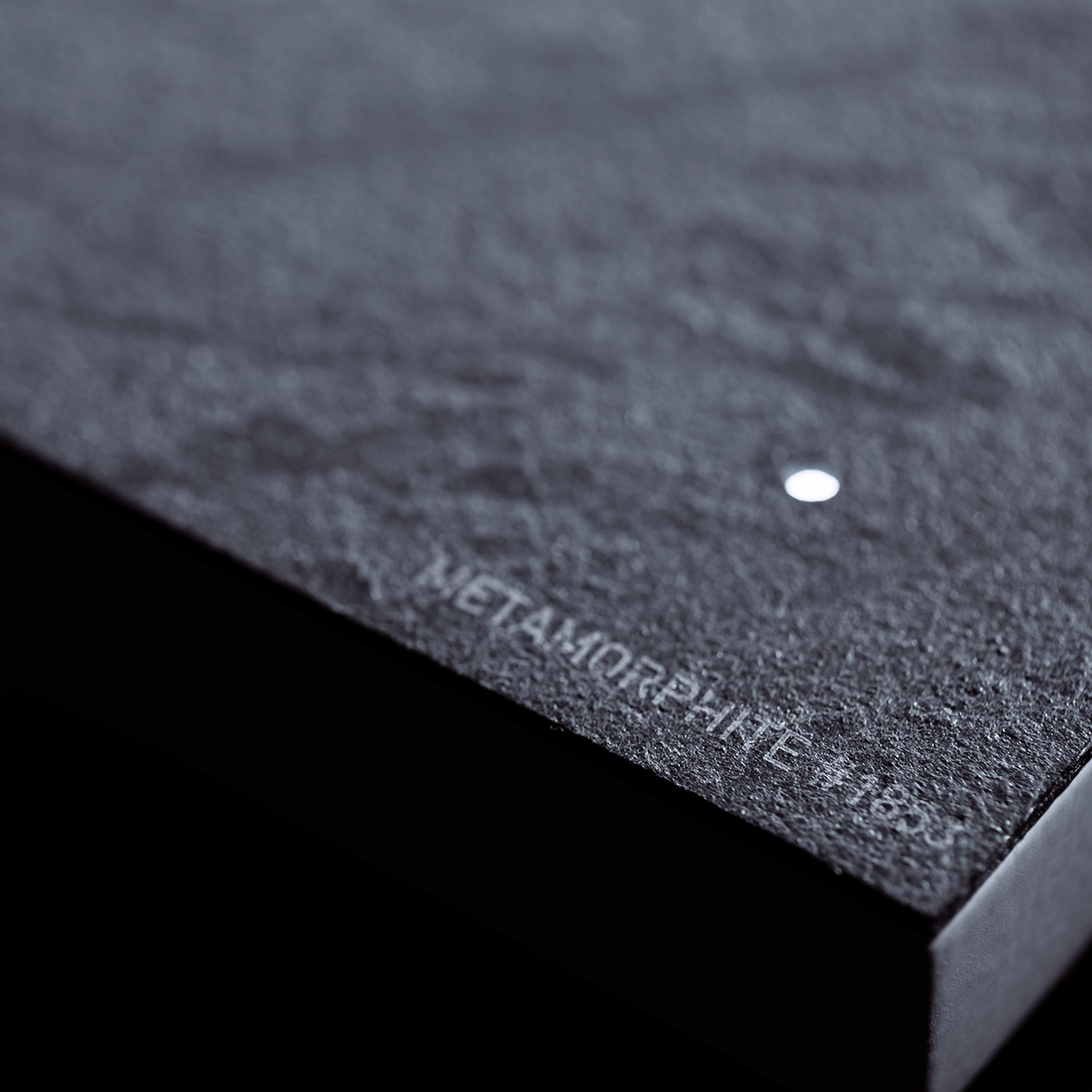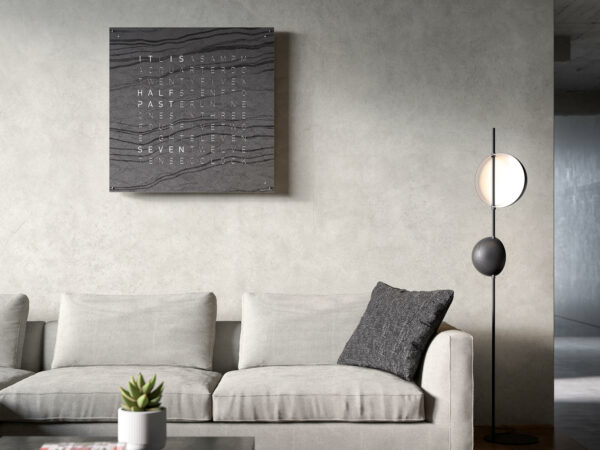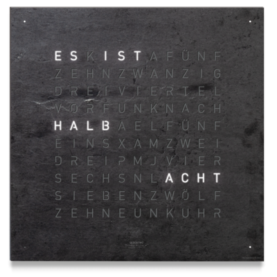 – QLOCKTWO EARTH 90 mit Frontcover aus Millionen Jahren altem, grauem Schiefer