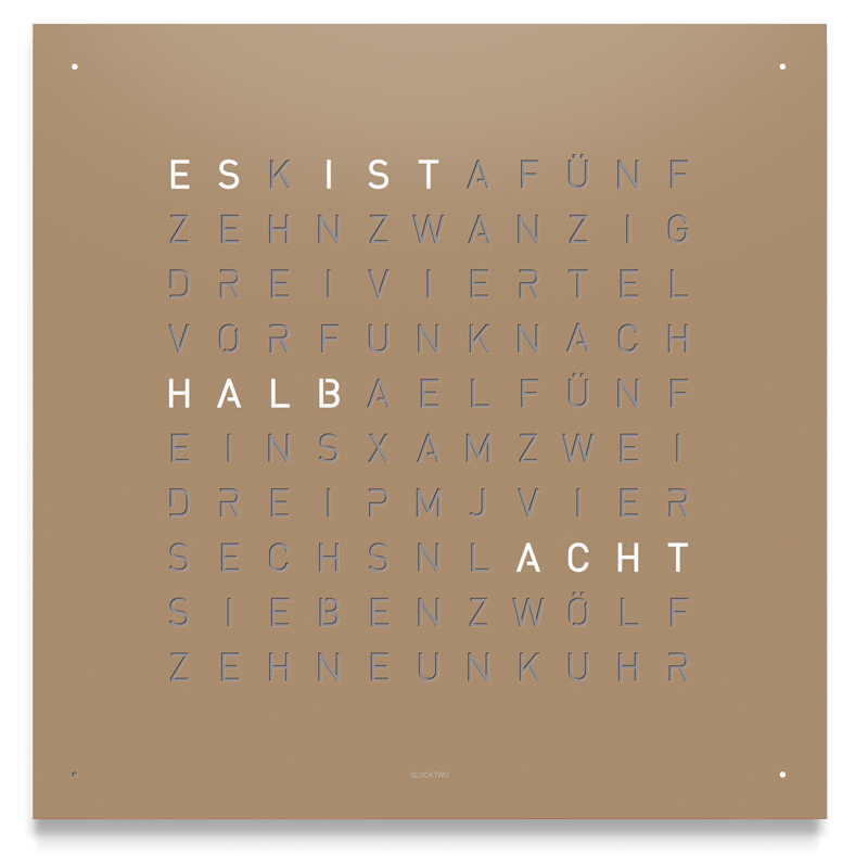 – QLOCKTWO EARTH 90 mit matt pulverbeschichteter Edelstahlfront mit Changeant-Effekt