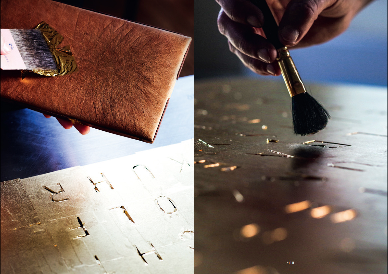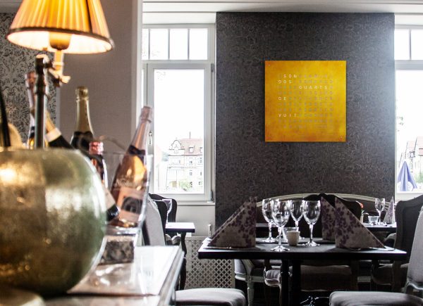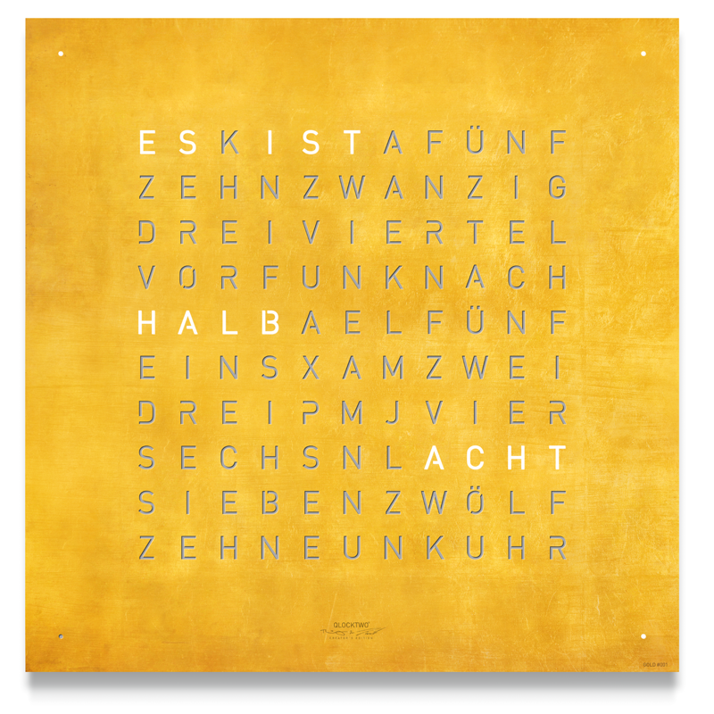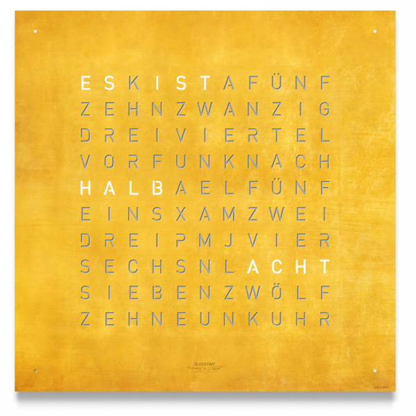 – QLOCKTWO EARTH 45 blattvergoldetes, auswechselbares Frontcover aus Edelstahl