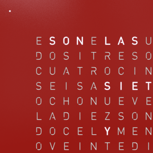 – Typografische Zeitanzeige in 5-Minuten-Intervallen kombiniert mit vier Minuten-Punkten in den Ecken