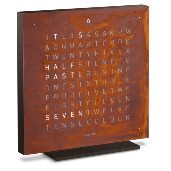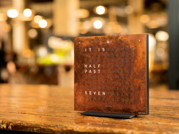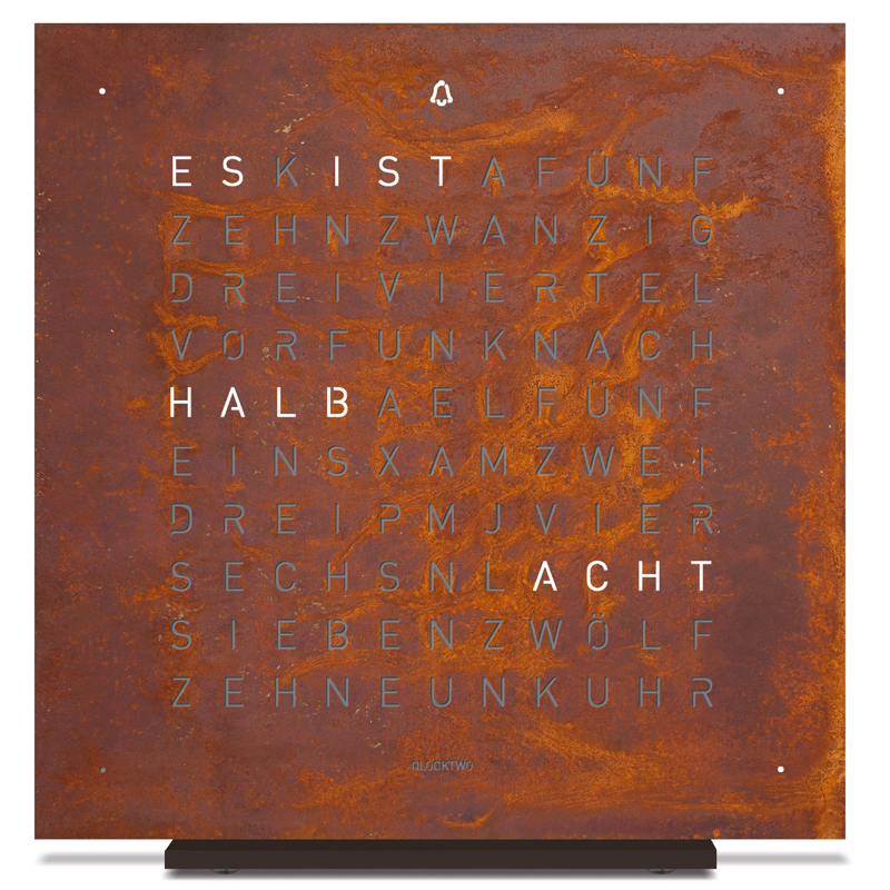 Durch die Fertigung in Handarbeit ist jede QLOCKTWO Rust ein Einzelstück, dass sich in seinen Farbverläufen und Intensitäten unterscheidet, wodurch ein wunderbares Unikat für Ihre Zuhause resultiert. Die vom Rost erzeugten Muster lösen bei jedem Betrachter unterschiedliche Assoziationen aus, die den Blick nicht nur zum Ablesen der Uhrzeit verweilen lassen.