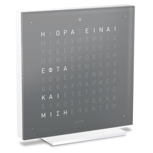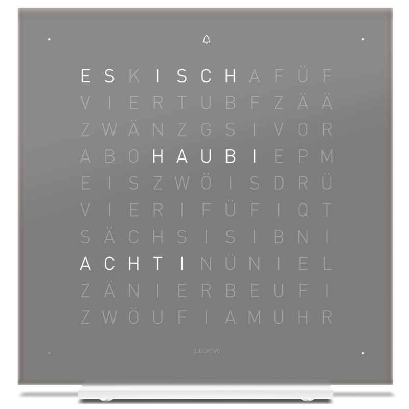 QLOCKTWO EARTH 13.5 ist eine Präzisionstischuhr mit Alarmfunktion im Format 13.5 x 13.5 cm. Die Uhrzeit wird in Fünf-Minuten-Schritten dargestellt, vier kleine Punkte sorgen für die exakte Minutenanzeige. Ein kompakter und ästhetischer Zeitmesser mit Alarmfunktion für Büro, Wohn- und Schlafbereich.