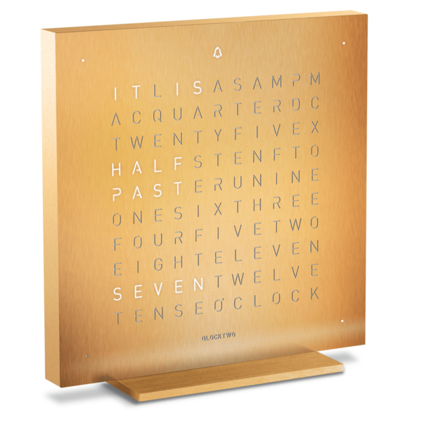 QLOCKTWO EARTH 13.5 ist eine Präzisionstischuhr mit Alarmfunktion im Format 13.5 x 13.5 cm. Die Uhrzeit wird in Fünf-Minuten-Schritten dargestellt, vier kleine Punkte sorgen für die exakte Minutenanzeige. Ein kompakter und ästhetischer Zeitmesser mit Alarmfunktion für Büro, Wohn- und Schlafbereich.
